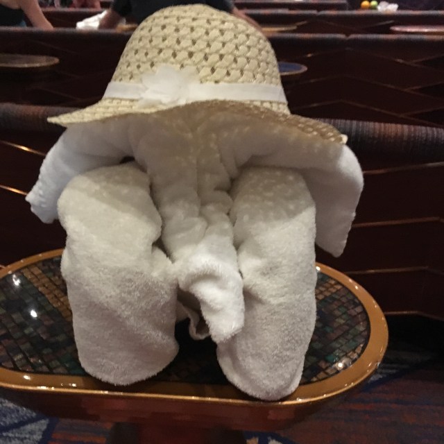 -The towel animal folding class, followed by a towel animal puppet show. Here’s a photo of one of the animals I made.